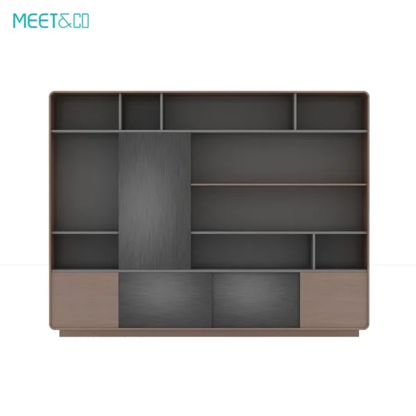 اللوحة الأمامية مصنوعة من لوح أسود مصقول مقاوم للحريق مع شرائط معدنية زخرفية، والباقي من خشب الجوز. يُستخدم المقبض الذهبي كزينة، وهو مزود بمفصلات أبواب عازلة مدمجة وقضبان توجيه عازلة. سواءً من حيث المظهر أو العملية، فهو الخيار الأمثل للمكاتب العصرية.