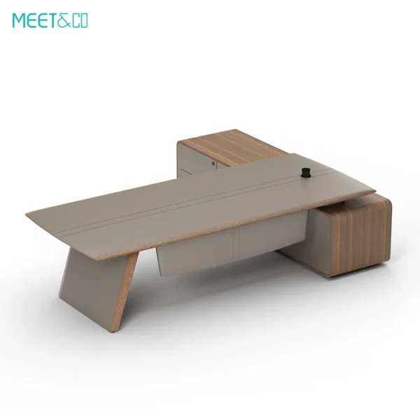 يجمع مكتب موتشي التنفيذي على شكل حرف L بين الحرفية الفاخرة والوظائف العصرية. مصنوع من خشب وجلد فاخرين، ويوفر مساحة عمل واسعة، ومساحة تخزين واسعة، وميزات ذكية مثل إدارة الكابلات المدمجة والشحن اللاسلكي. ارتقِ بمساحة عملك مع هذا المكتب الأنيق والقابل للتخصيص، والذي يجمع بسلاسة بين الراحة والرقي.